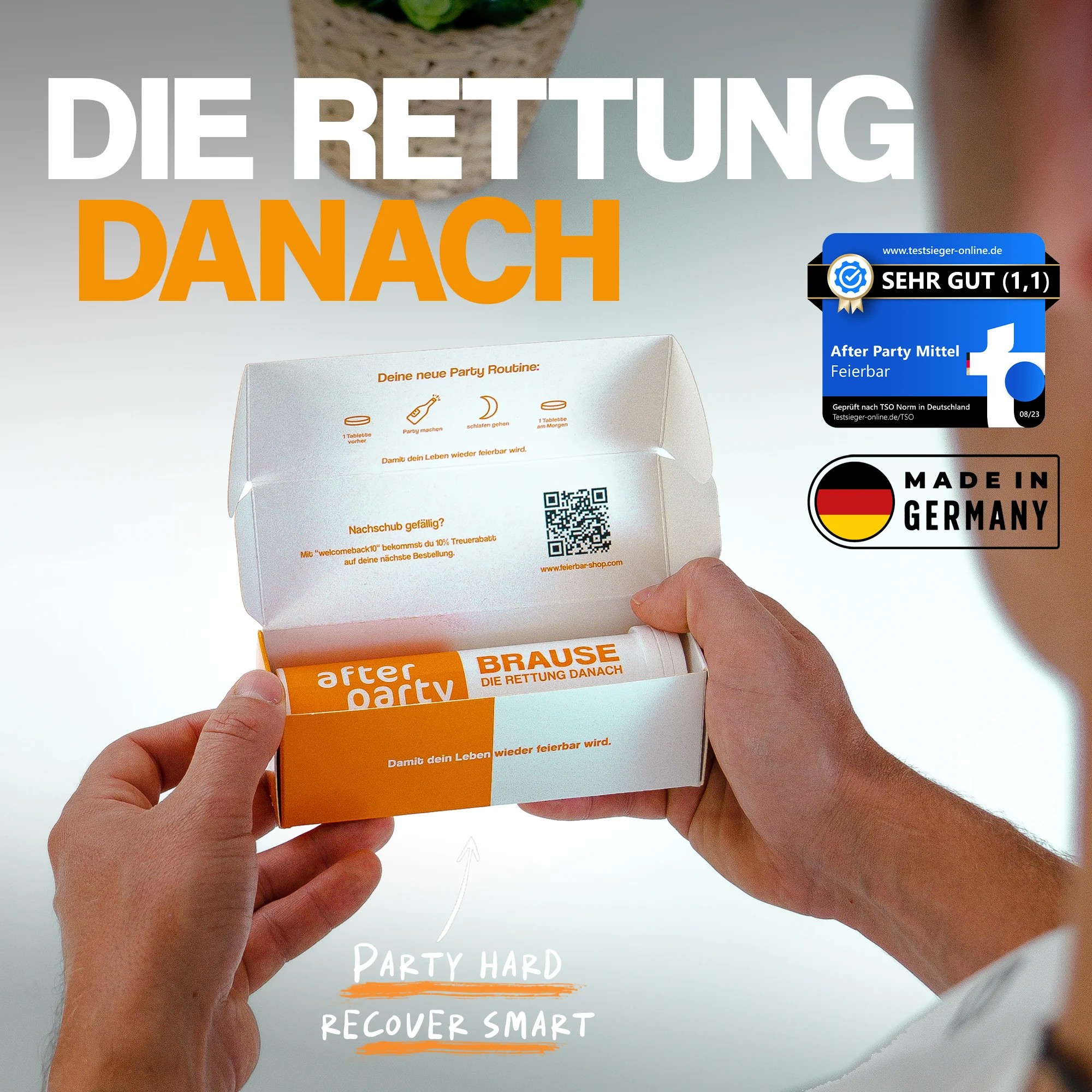 feierbar is a lifestyle brand redefining after-party recovery. With a focus on functional nutrition, the brand offers tablets packed with electrolytes, vitamins, plant extracts, and caffeine, designed to help users feel refreshed, energized, and ready for the day after late nights.