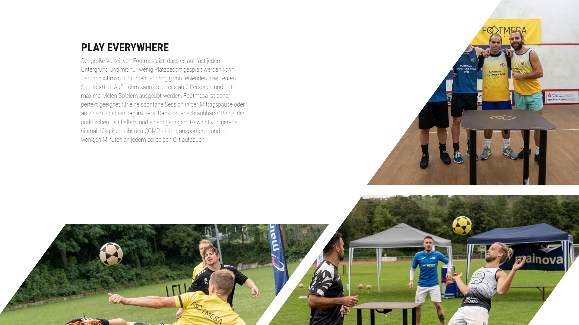 Footmesa is a sports brand built around an emerging Brazilian trend sport of the same name. The sport combines elements of football, volleyball, table tennis, and headis and has developed a growing community in Germany through local clubs, tournaments, and grassroots initiatives.