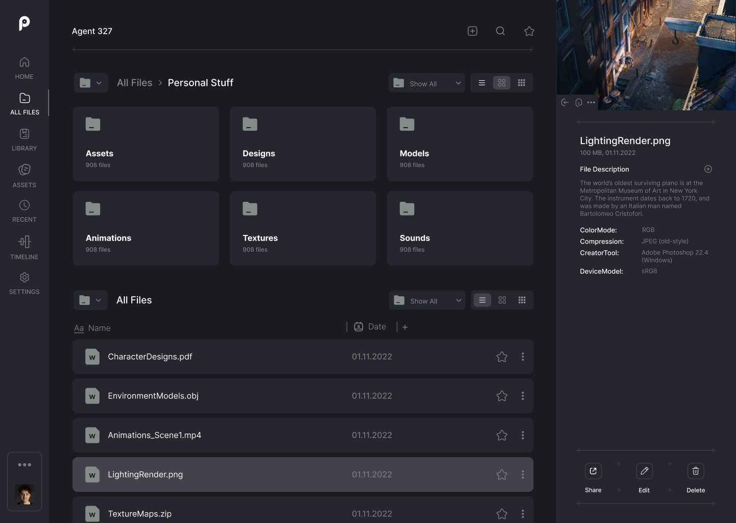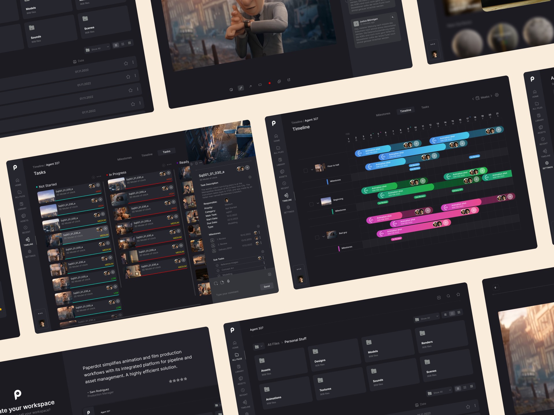 The interface is designed with modularity in mind: casual users see only essential functions, while advanced users can add tools via drag-and-drop. Every folder and project can be personalized like a notebook, allowing for workflow templates, milestones, and project-specific structures. By reducing unnecessary complexity, Paperdot ensures that artists can focus on their creative tasks rather than navigating the pipeline itself.