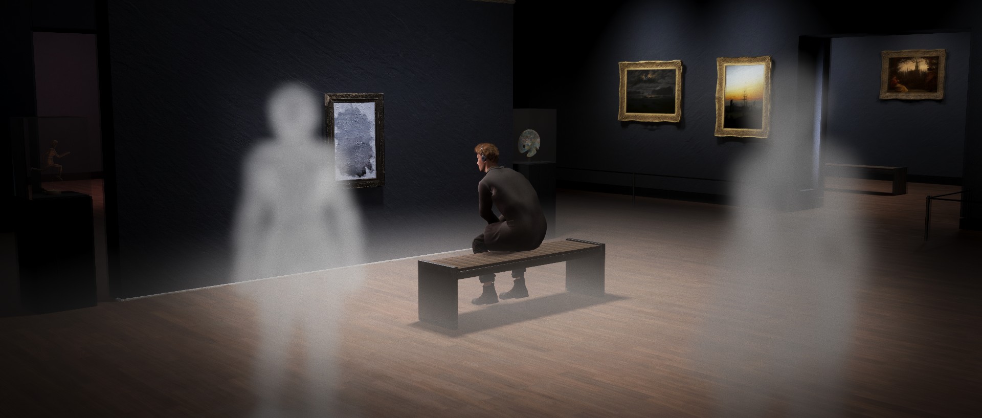David can visualize the worlds behind his paintings. However, the longer he looks at a painting in the museum, the more his own creativity begins to fade. An oppressive fog descends, and the voices of the visitors increasingly crowd his mind. The film explores whether he can escape this mental pressure and reconnect with his creative core.